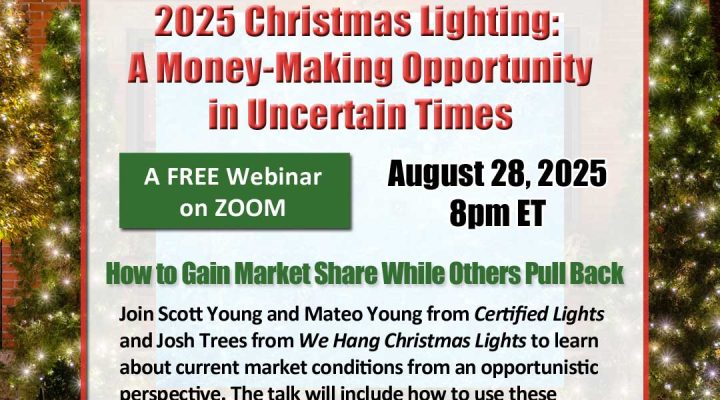 Are you wondering how to keep your Christmas light installation business growing while others are reaching a plateau? Join Christmas decorating pros, Scott Young and Mateo Young from Certified Lights and Josh Trees from We Hang Christmas Lights to learn about today’s business climate and what you can do to continue growing your business. This free ZOOM webinar presented by Christmas Expo will be Thursday, August 28 at 8pm ET. Register now at https://us06web.zoom.us/…/reg…/WN_mBmAb0EsTxqzQ9Ofw0X1uA